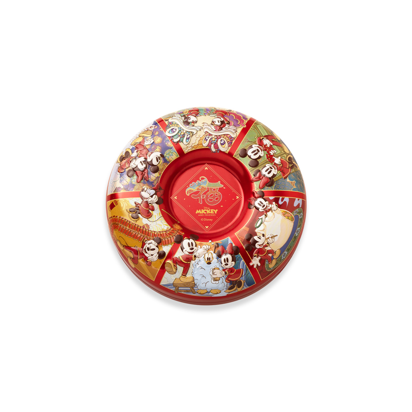 本次备受瞩目的迪士尼米奇与好友贺年什锦礼盒,其设计本身便是一份值得珍藏的艺术佳作。礼盒以经典中国红为底,中心镌刻吉祥“福”字,四周环绕由米奇、米妮及好友们倾情演绎的十二幅新春场景长卷。